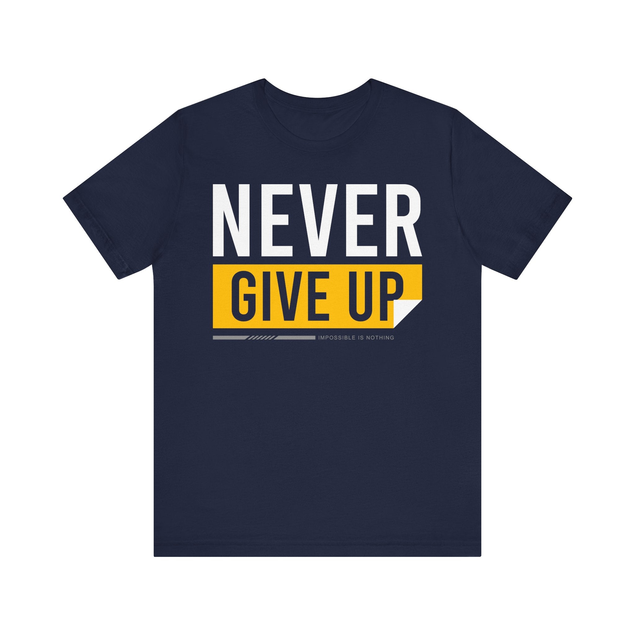 Motivational Unisex Tee - 'Never Give Up' Black Shirt, Inspirational Gift, Workout Top, Daily Wear, Encouragement Apparel