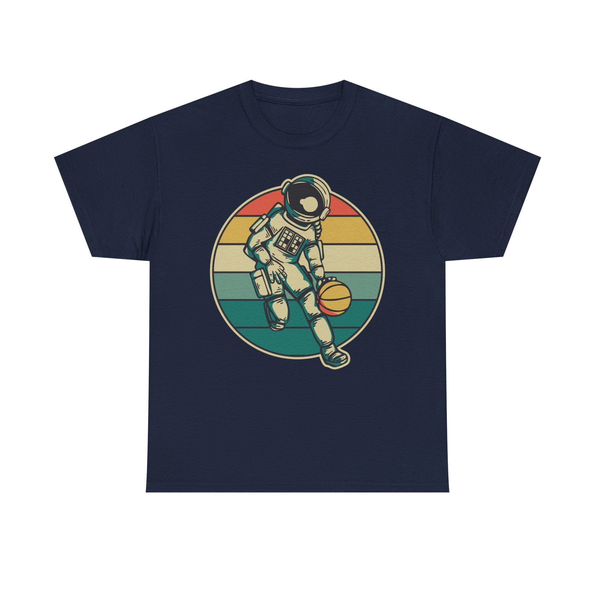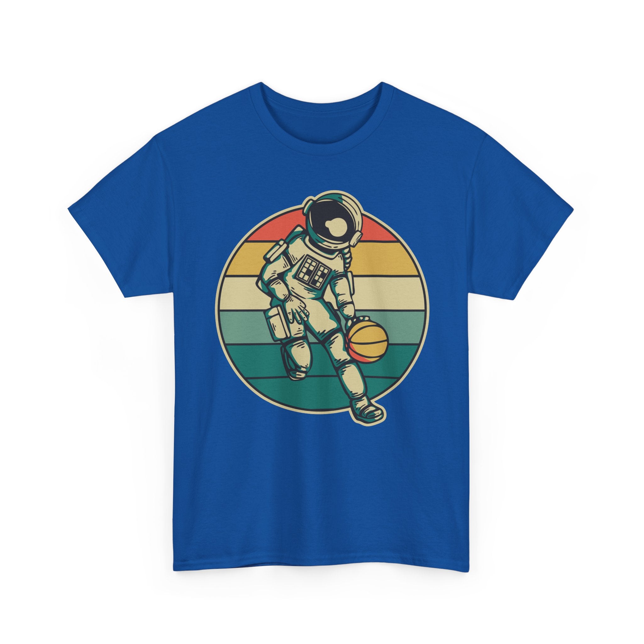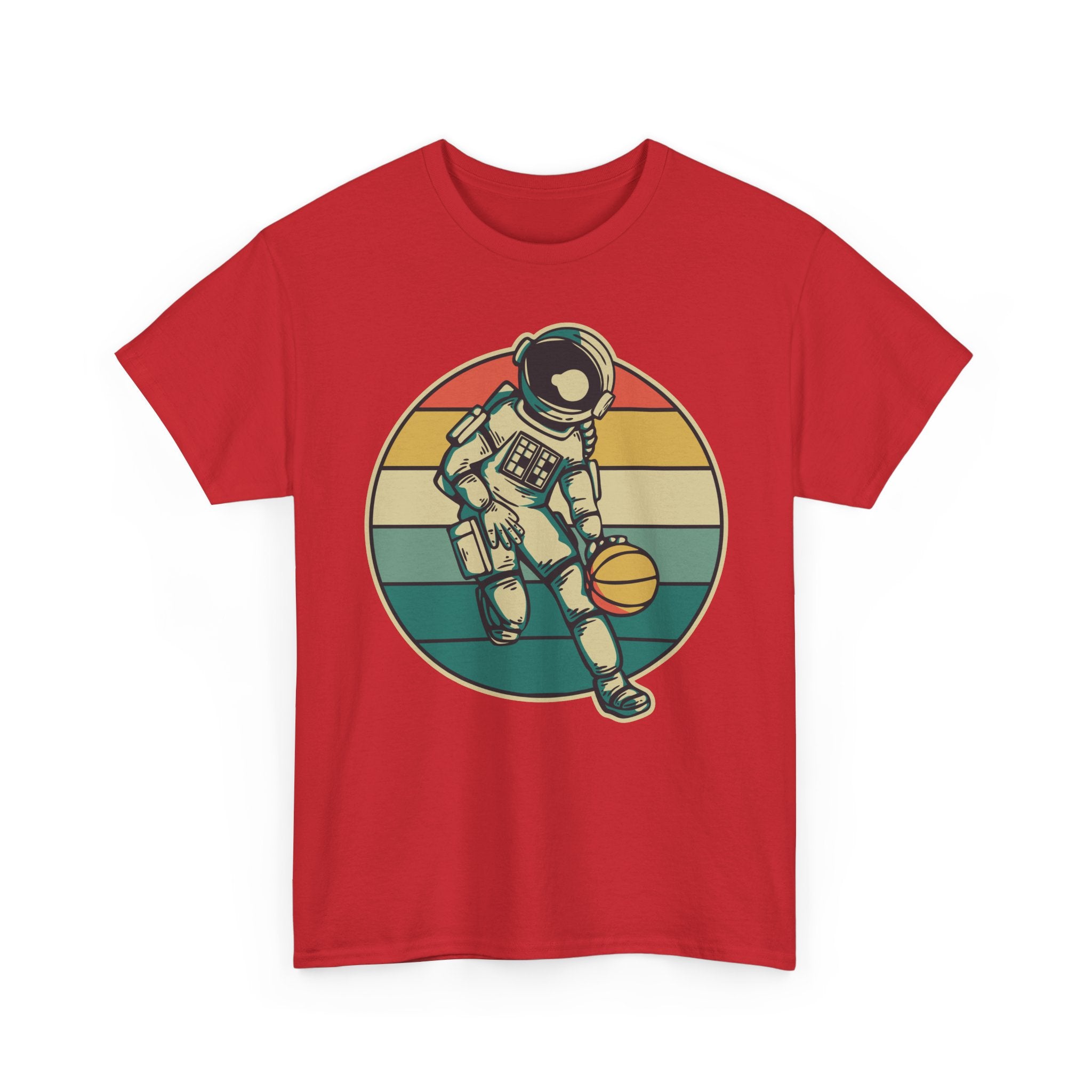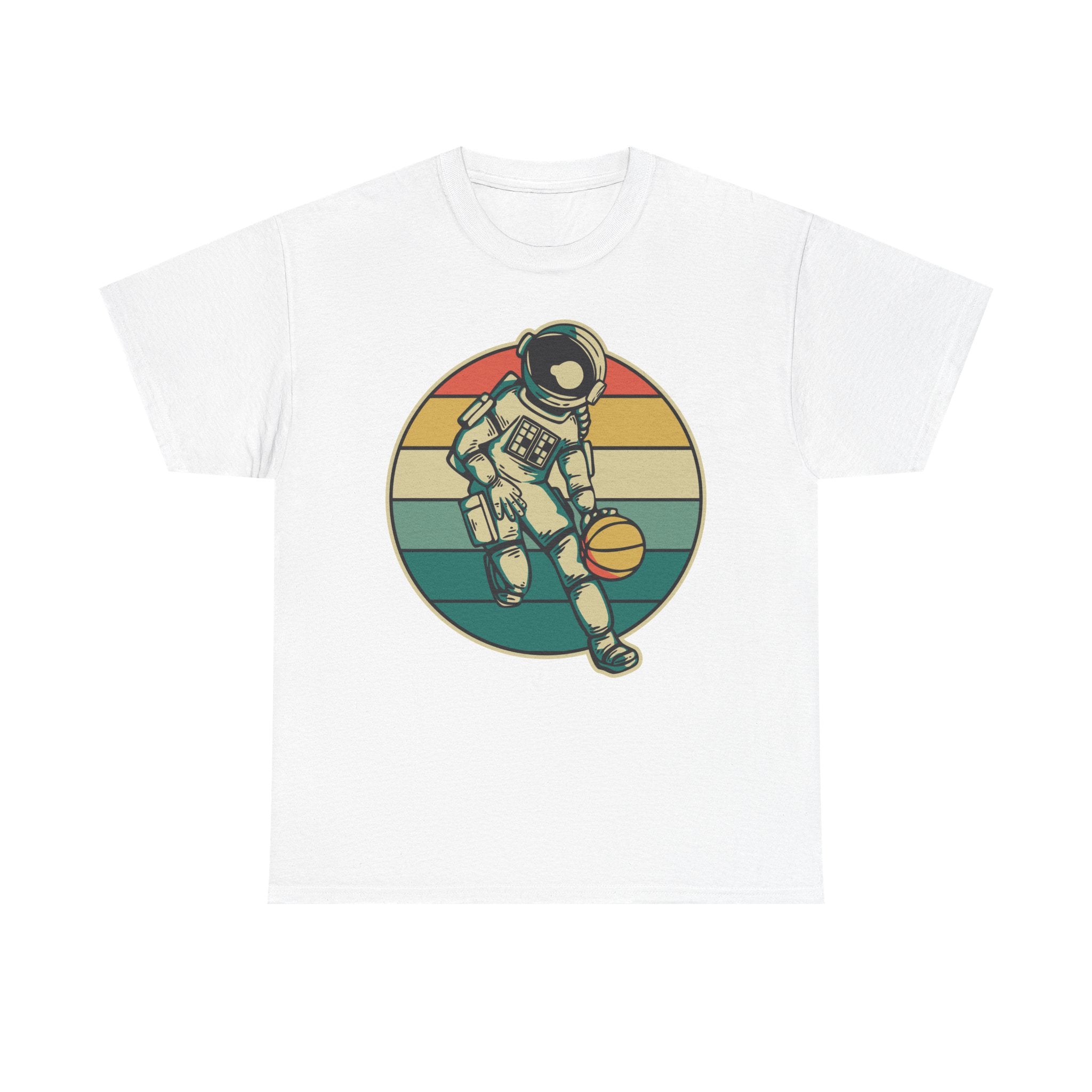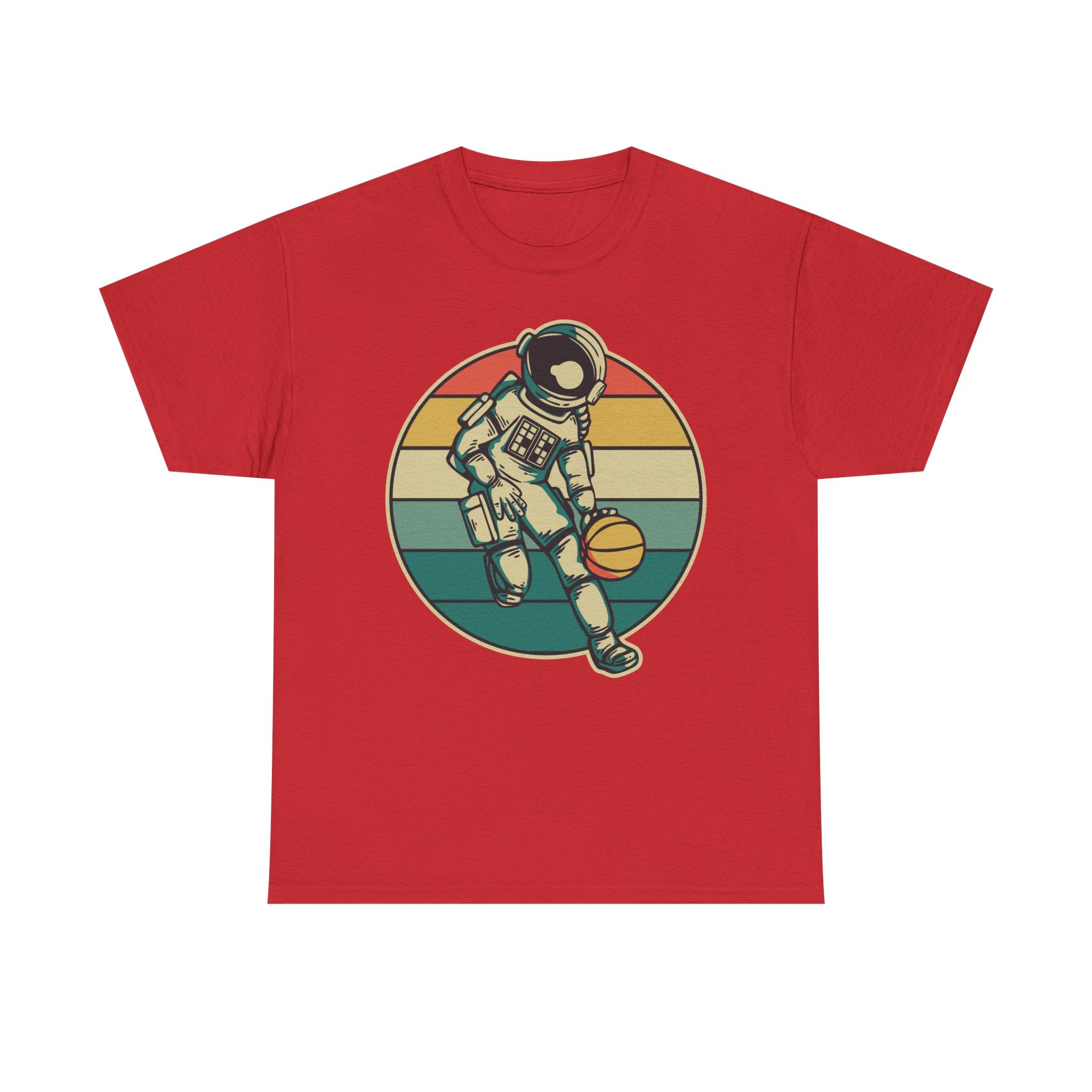 Retro Astronaut Basketball Unisex Heavy Cotton Tee, Casual Graphic Tee, Space Lover Gift, Fun Streetwear, Unique Presents
