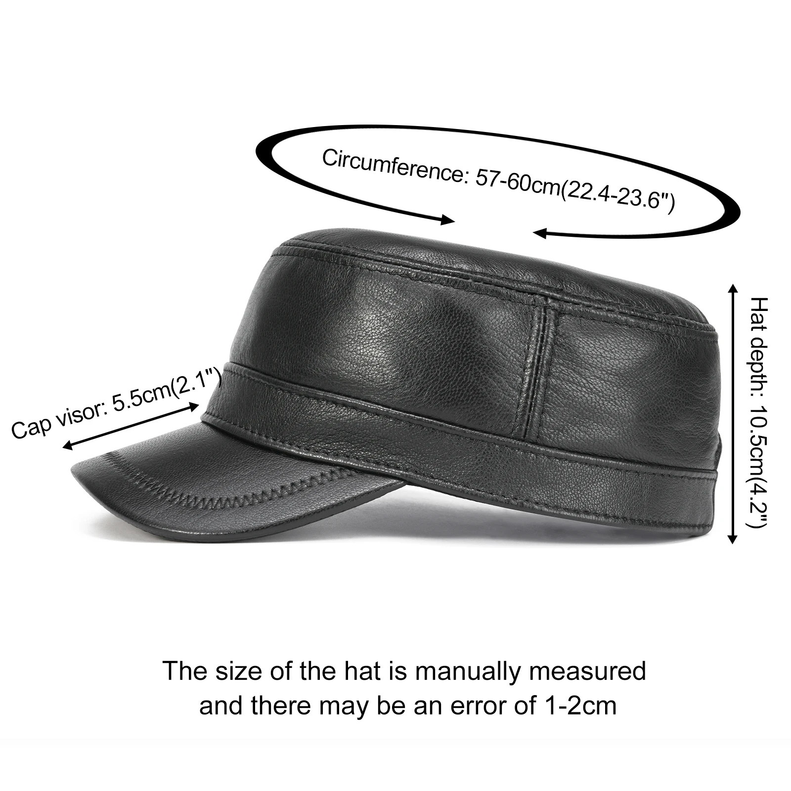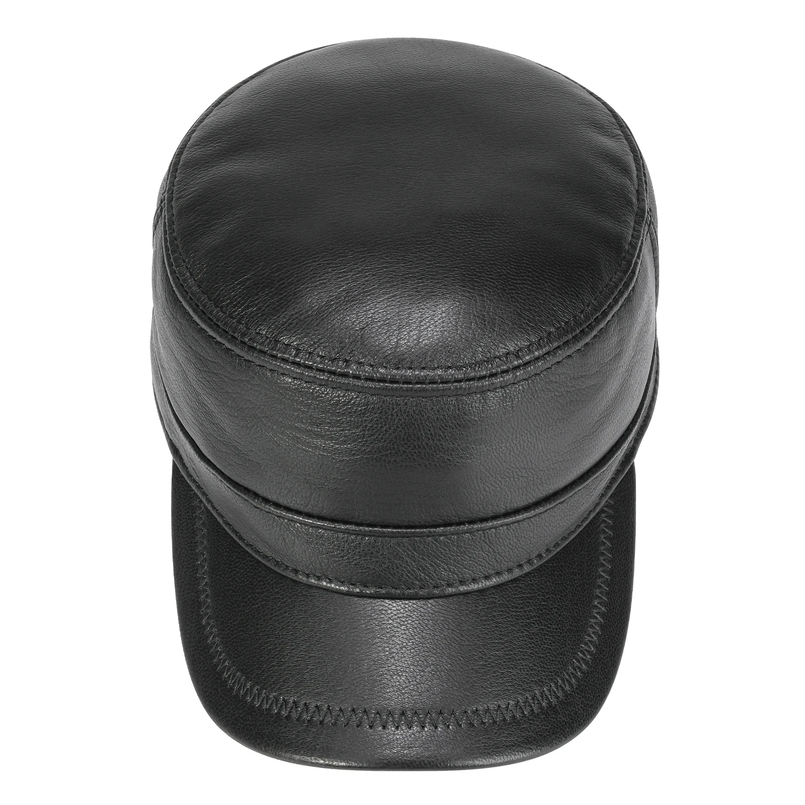 Winter Leather Cadet Army Cap Cabbies Adjustable Soft Flat Top Military Style Hat for Men